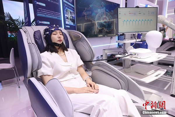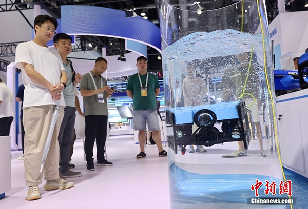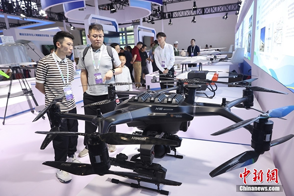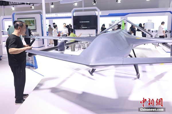 7月13日,第二十六届北京科博会在北京国家会议中心开幕。本届科博会以“实施创新驱动发展战略 增强高质量发展动能”为主题,主要分为展览会、贸易投资促进活动和线上展示对接三大部分。其中,展览会展区总面积约2.2万平方米,共设置信息科技、智能制造、医药健康、绿色双碳、数字经济和区域创新发展等6个专题展区。图为垂直起降无人机吸引参观者。