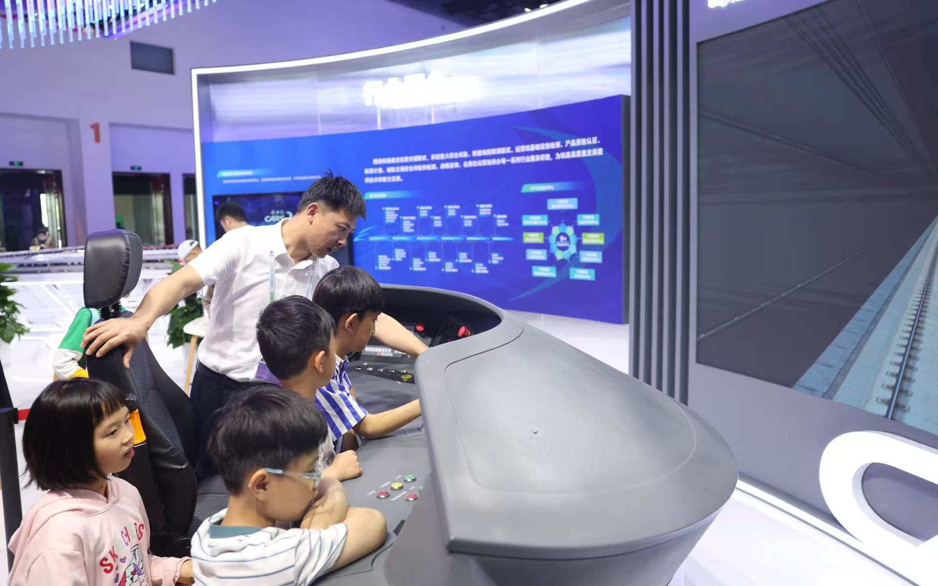 小朋友正在体验高铁驾驶。新京报记者 王飞 摄