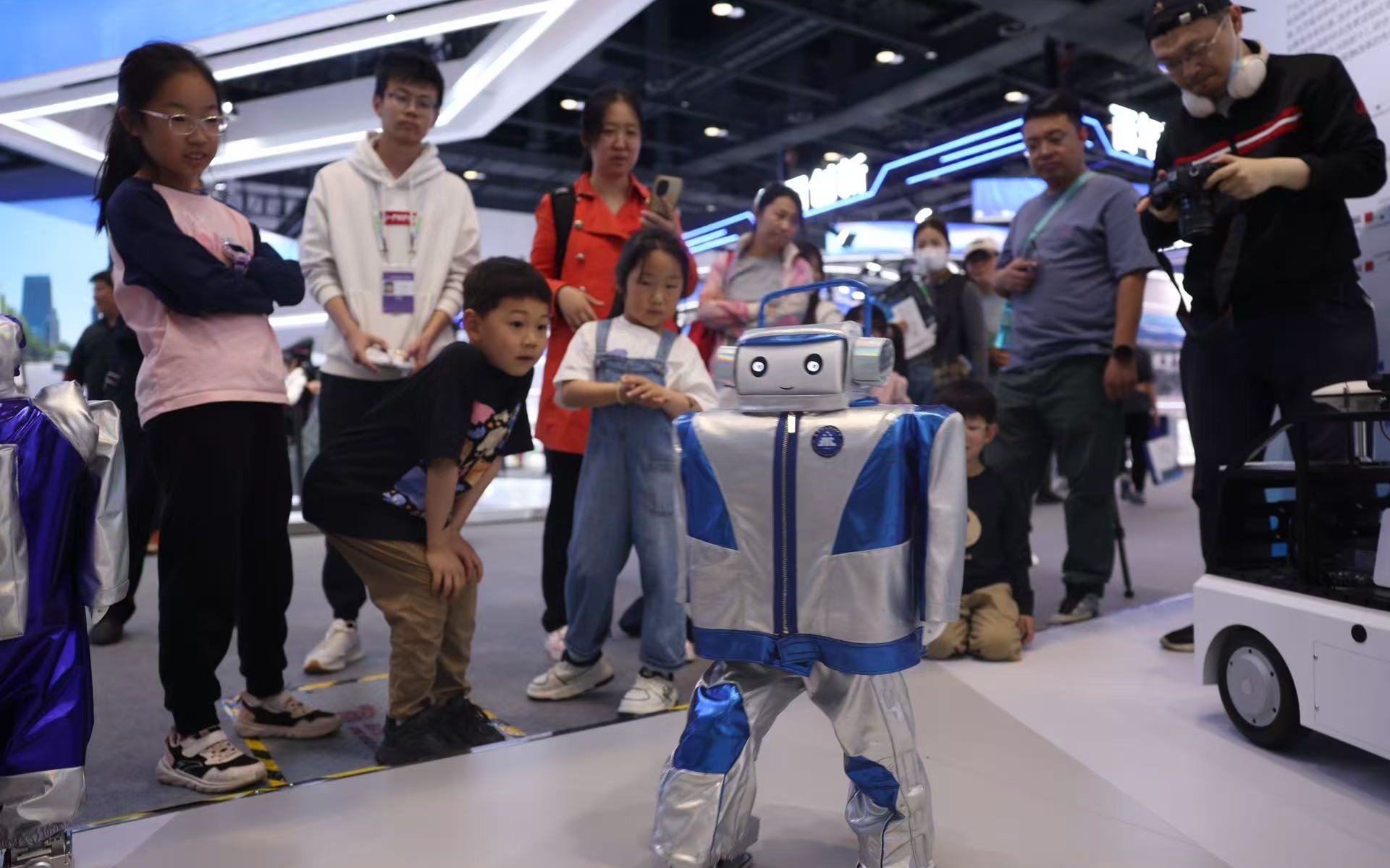 科博会最后一天,小朋友观展“打卡”机器人