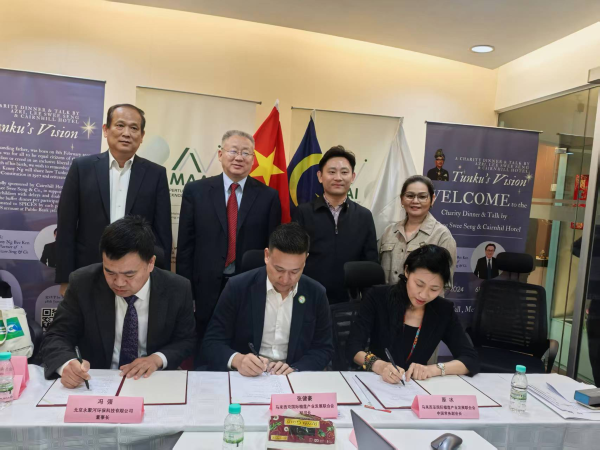 当天下午,北京市贸促会与马来西亚工商企业协会共同举办中国(北京)-马来西亚企业经贸对接会,涉及人工智能、环保科技、金融服务、激光科技、数控设备、医药健康、法律服务、建筑材料、清真食品等领域的30余家企业参会。会上北京市怀柔区商务局局长云静进行投资环境推介,北京市贸促会副主任、北京国际商会副会长兼秘书长朱家亮介绍北京的投资环境,邀请马来西亚企业参加链博会、北京服贸会、北京科博会等重大展会和经贸活动。北京京都时代科技中心与马来西亚国际榴莲产业发展联合会现场签约,北京金田麦国际食品有限公司与马来西亚SK冷冻食品进出口有限公司、飞翔贸易有限公司洽谈并达成深化合作意向。